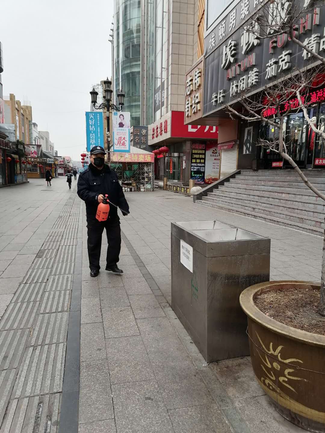 站前步行街雖然每天人不多,但我們還是依然堅(jiān)持每天消毒,防疫情大伙一起努力!